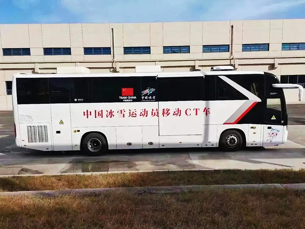 中國冰雪運動員移動CT車配置有最新螺旋CT掃描設備,能輔助完成運動員顱腦損傷診斷、遲發性顱內出血的監測及早診斷、脊柱骨折脫位診斷、骨盆及四肢骨折脫位的診斷、隱匿性骨折排除、腹部臟器損傷早期診斷、胸部損傷早期診斷。另外在疫情期間,為避免人員交叉感染,CT車采用醫患隔離操作室,把CT檢查設備、獨立操作室、獨立掃描室、輻射防護設備等全隔間操作,全程無接觸,避免交叉感染。檢查室和CT掃描室都配備有紫外線消毒裝置,移動CT車可實現一檢一消毒,有效避免醫患交叉感染。而且對于疫情期間的肺部檢查,移動CT車能夠實現早發現、早診斷、早隔離、早治療,降低檢查感染的風險。