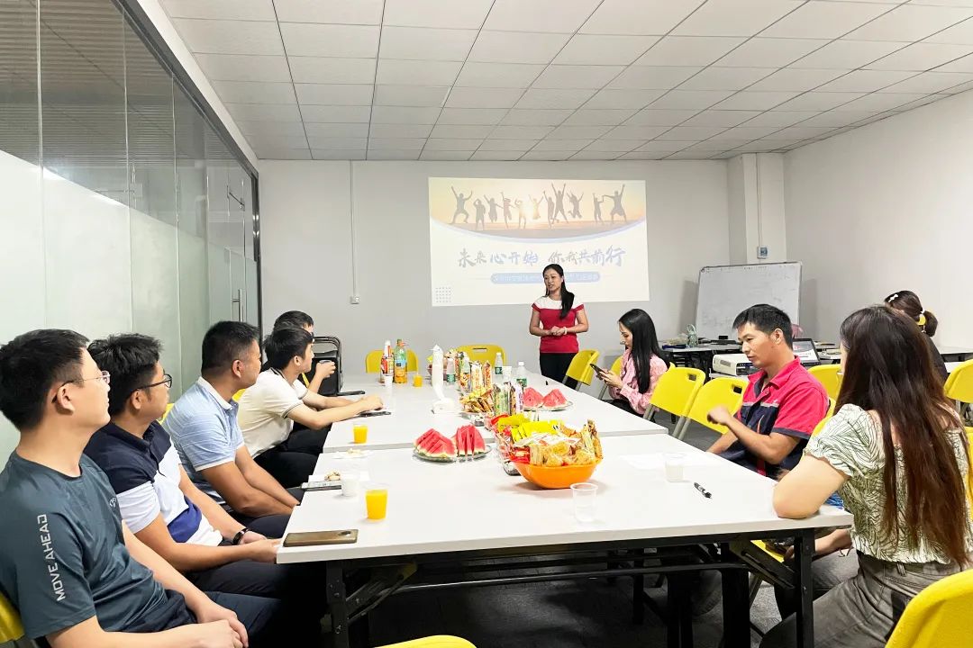 人力資源部李經理對新員工的加入表示熱烈歡迎并介紹各部門業務板塊,分享了艾克瑞的企業文化。同時希望各位新人積極努力、主動工作,憑借各自豐富的工作經驗,為各部門注入新能量。在工作中有困難及時提出,隨時溝通交流。