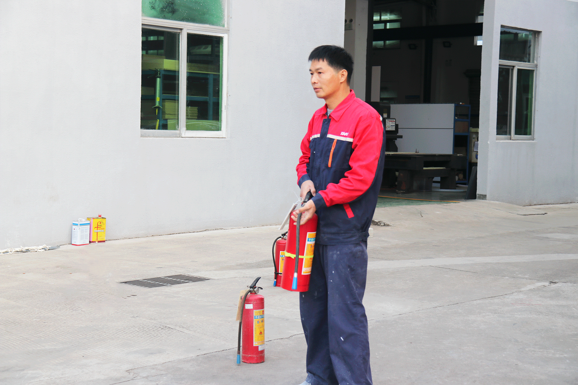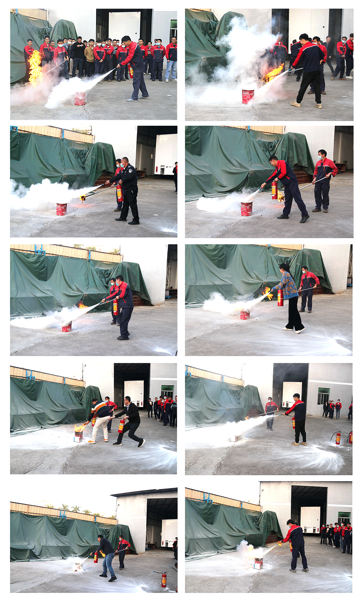 演練開始之前,首先由現場搶險組隊員為大家講解干粉滅火器的正確使用方法,其后全體員工通過實際演練,能夠正確、迅速運用滅火器滅火。