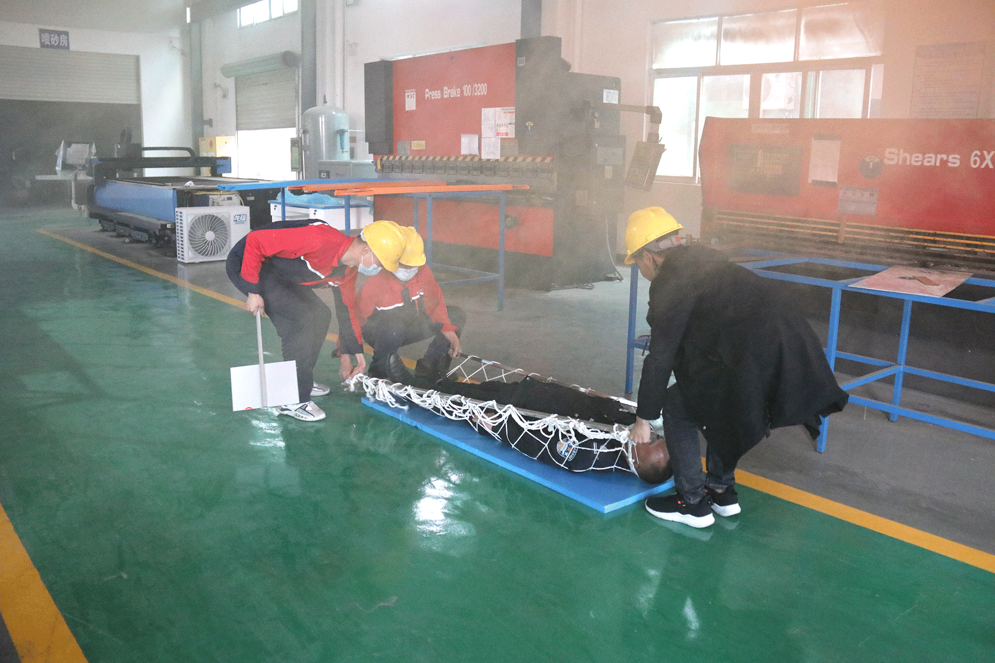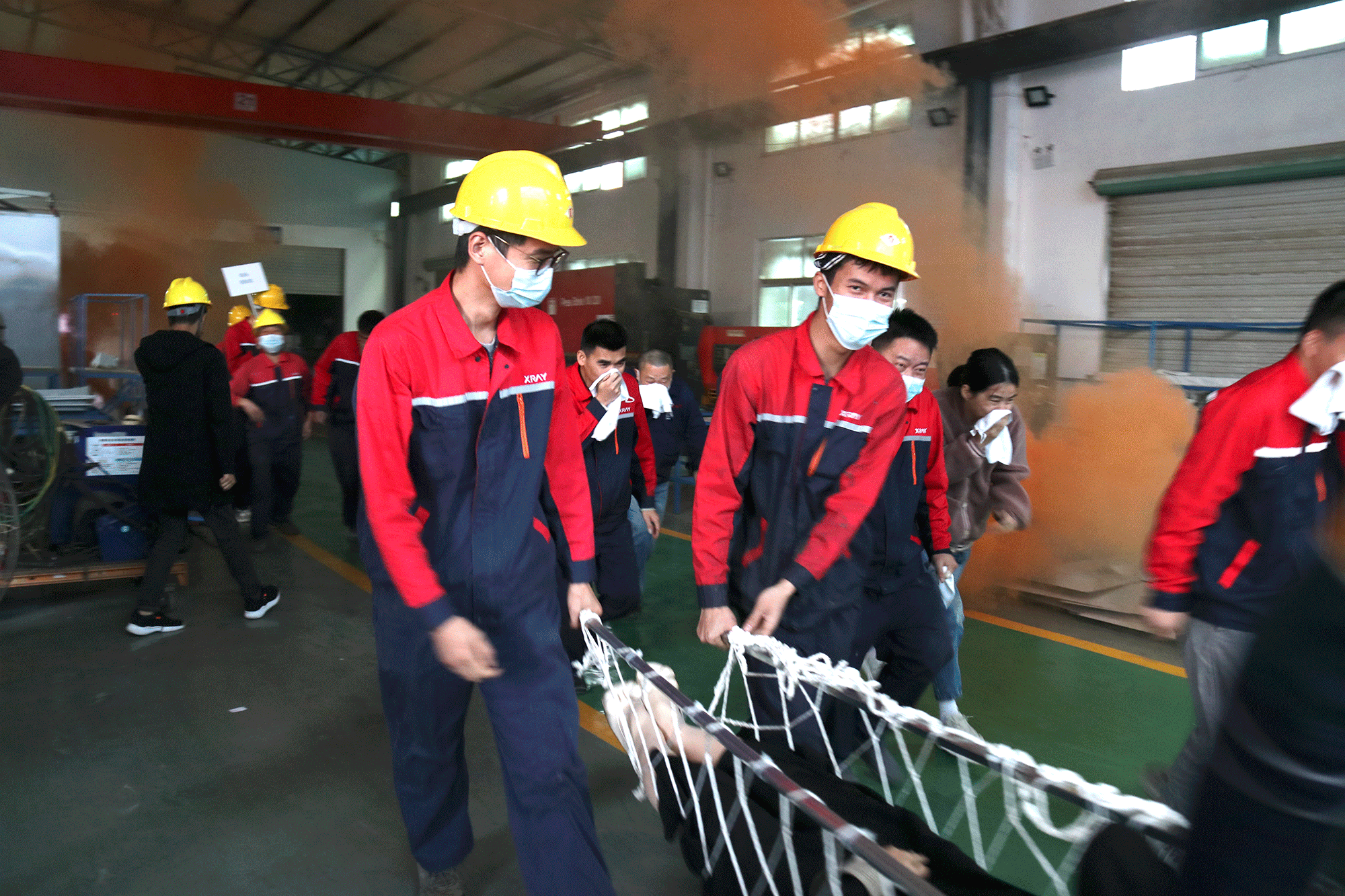 隨后,參照演習預定方案,現場模擬生產車間著火,工作人員發現火情時,火情已快速蔓延,無法自行撲滅,隨即上報現場負責人,現場負責人立即組織人員疏散并按照流程上報,艾克瑞第一時間宣布啟動火災事故現場應急處置方案,并按照方案開展人員疏散、現場搶險、醫療救護、請求支援等一系列快速有序的救援滅火行動。