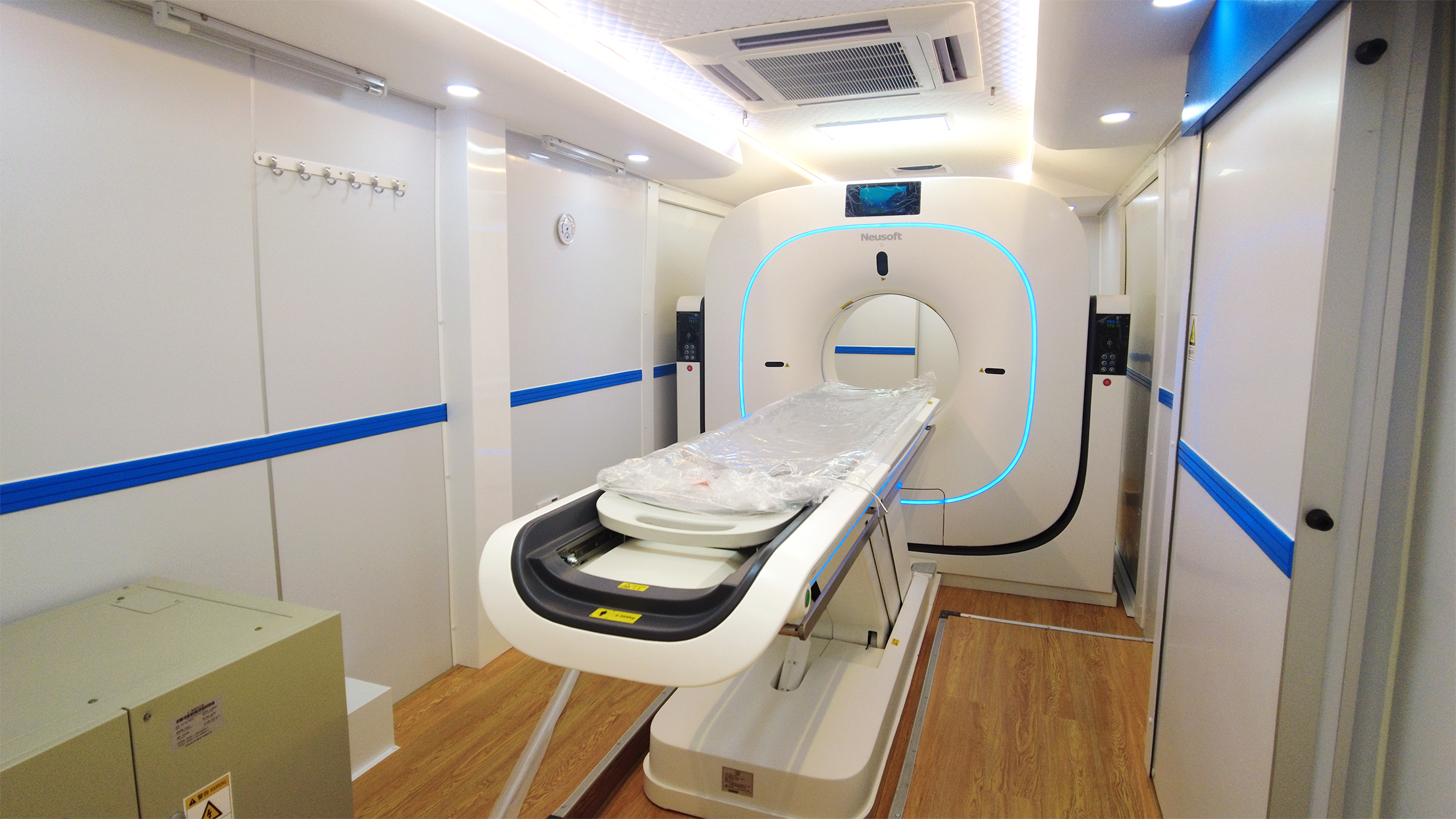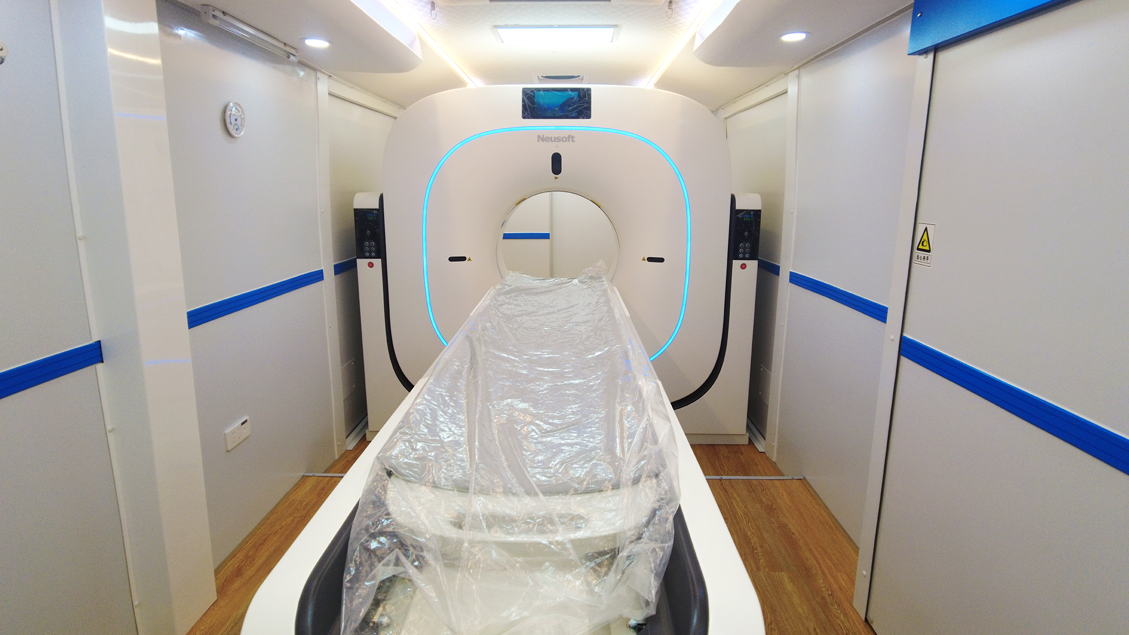 2023年4月,東軟、聯影與艾克瑞攜手合作,根據大德浙江醫藥股份有限公司、安徽皖北煤電集團總醫院的需求,為他們打造專屬的移動CT車,助力提升移動醫療影像移動化的可及性,推動中國醫學影像事業發展。