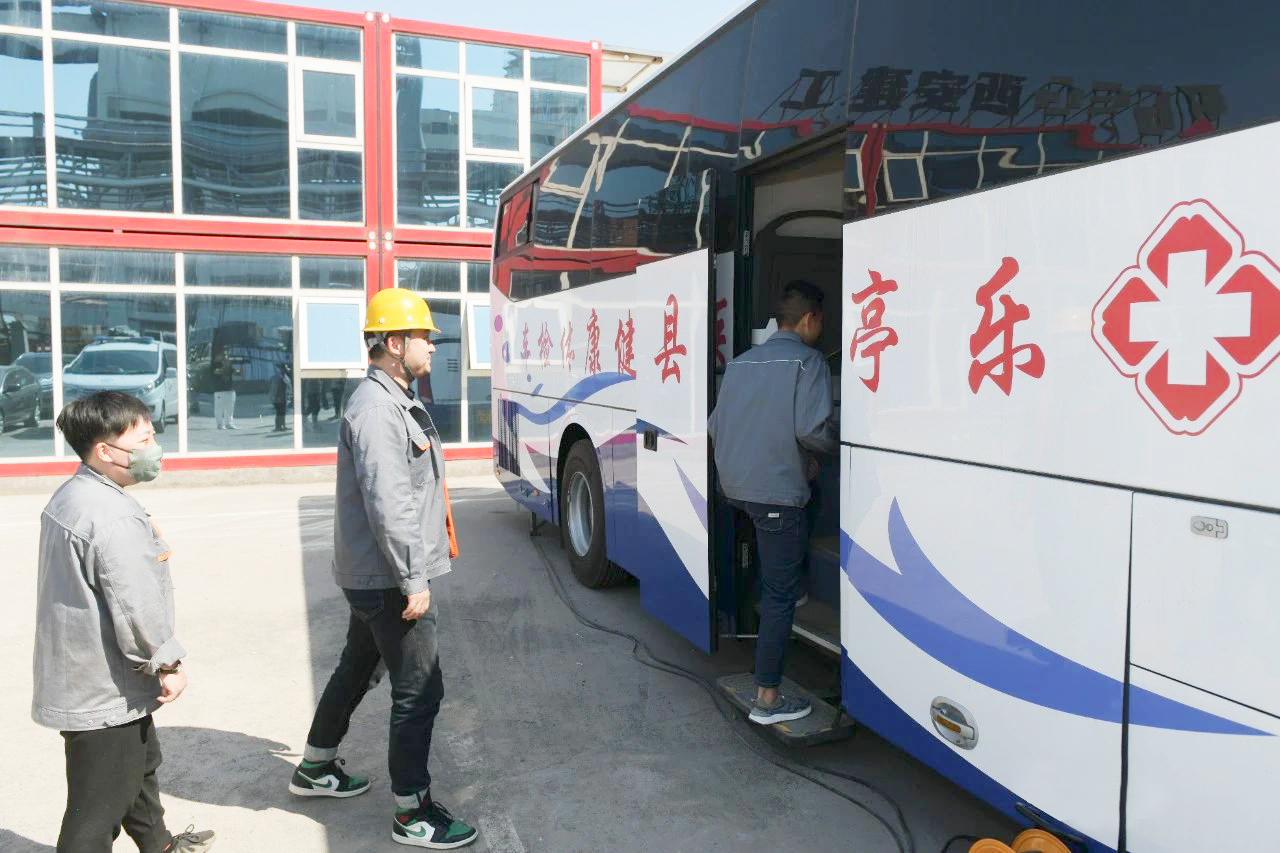 5月18日至22日,為進一步加強職業病健康監督管理,保障從業人員身體健康及相關權益,樂亭縣醫院體檢科使用最新配備的艾克瑞多功能體檢車,為唐山國堂鋼鐵有限公司(簡稱“國堂”)509名職工提供全流程上門服務。