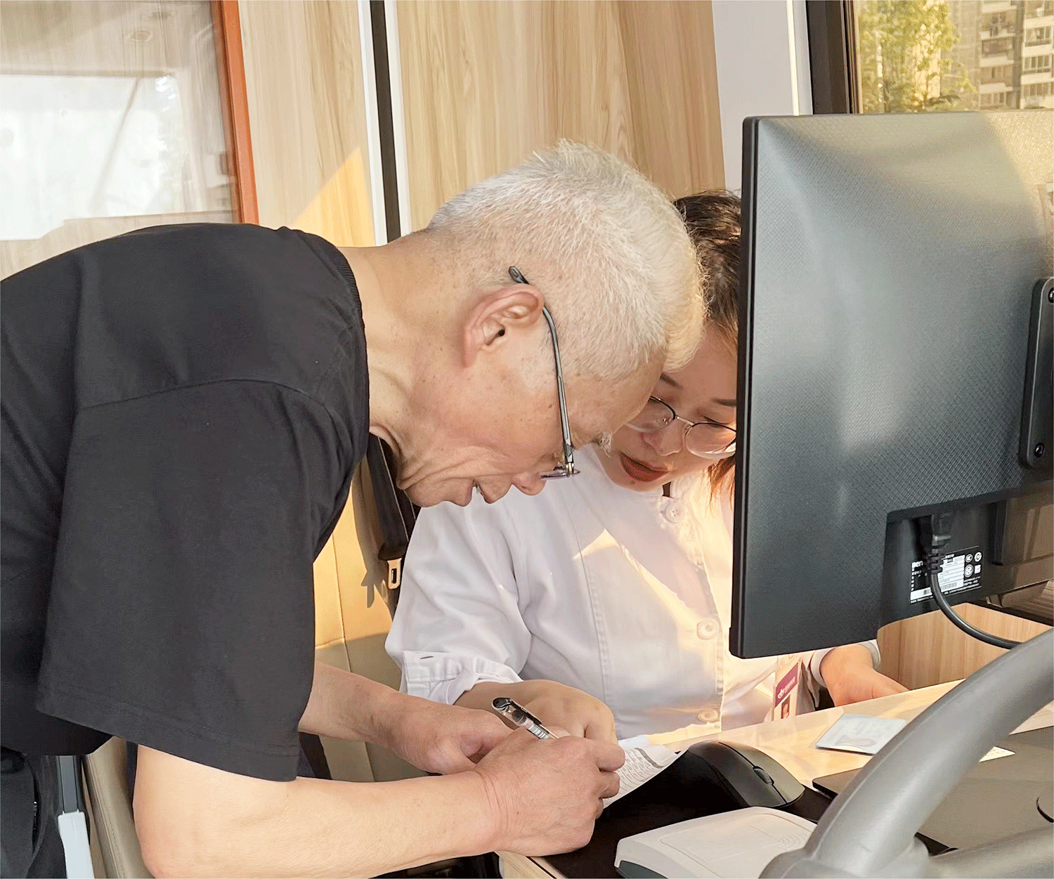 體檢現場,醫護人員按照體檢名冊逐一進行登記。志愿者們熱情地幫助維持秩序、耐心解疑,貼心幫助居民們完成體檢事項。