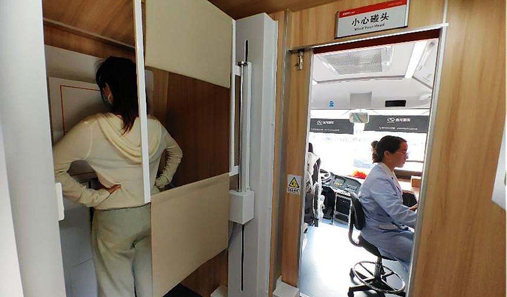 記者登上移動體檢車發現,車內干凈整潔,溫度適中,根據不同的體測項目,體檢車分為B超區、心電圖區、放射區、電測聽區、肺功能及婦科檢查等檢測區域,功能檢查及基礎健康檢查設備分類設置,一應俱全,可同時進行5大項20多個小項的檢查,實實在在為企業員工提供便捷的健康體檢服務。