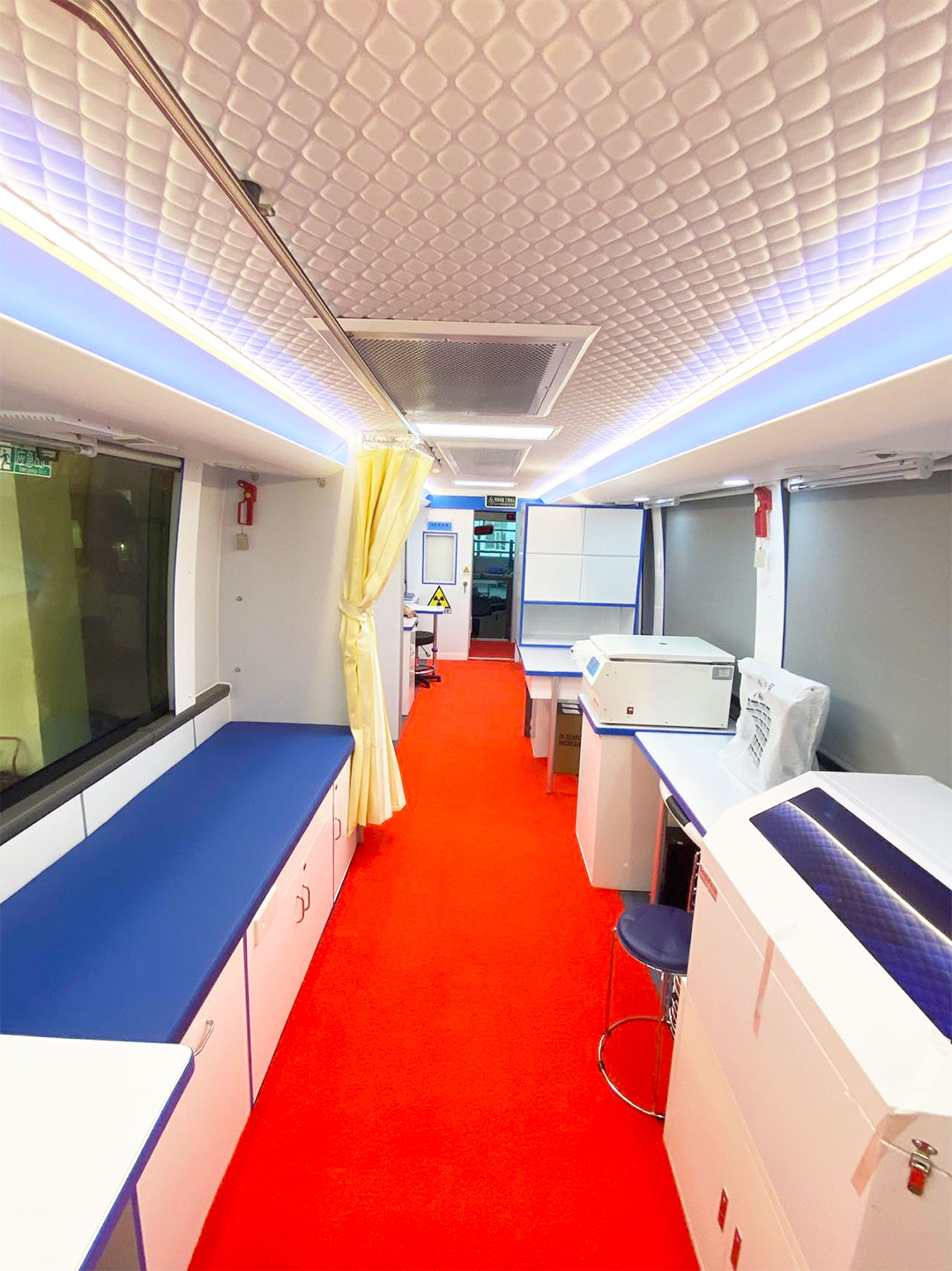 該車采用大客車等空間利用率較高的底盤改裝,搭載車載DR、彩超、心電圖機、全自動生化分析儀、血液細胞分析儀等檢查檢驗設備,相當于把醫院門診、體檢中心送到鄉鎮、街道、單位以及居民家里,讓當地老百姓在“家門口”就能看病就診。