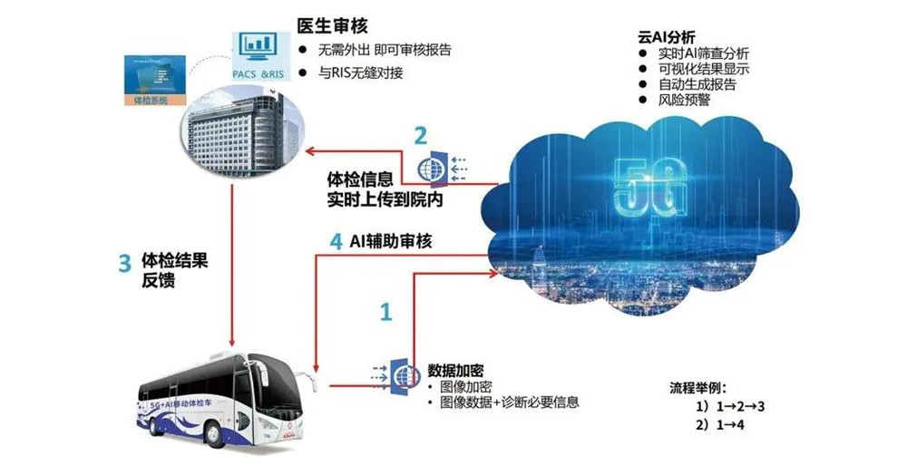 其次,艾克瑞智能5G體檢車利用人工智能技術對患者進行篩查和初步診斷。車內搭載了先進的人工智能算法,可以對患者的影像數據進行快速分析和輔助診斷。醫生可以通過智能終端設備,遠程訪問車內的數據和診斷結果,實現及時的遠程會診和指導。