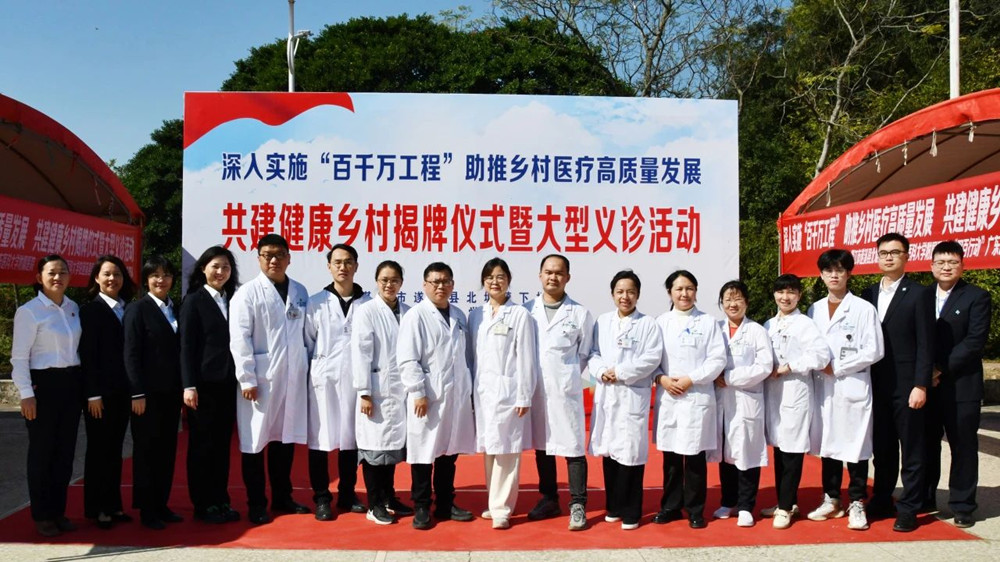 當(dāng)天上午,廣東醫(yī)科大學(xué)附屬醫(yī)院與湛江市遂溪縣北坡鎮(zhèn)下?lián)迮e行共建健康鄉(xiāng)村揭牌儀式暨大型義診活動(dòng)。共建健康鄉(xiāng)村項(xiàng)目啟動(dòng)后,醫(yī)院將通過(guò)健康篩查與干預(yù)、健康知識(shí)普及、健康講堂進(jìn)鄉(xiāng)村、生育關(guān)懷行動(dòng)等方面提供醫(yī)療健康服務(wù),讓健康理念融入全體村民的生活當(dāng)中,讓村民在家門口放心享受健康服務(wù)。