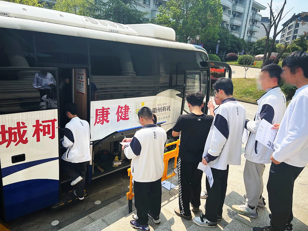 隨著高考的臨近,衢州市高三學子們正在全力以赴備戰這場人生的重要考試。為了更好地服務考生,為高考學生護航,讓學生足不出校即可完成體檢,衢州市教育考試院特聯合衢州市柯城區人民醫院采用健康體檢車“送檢到校”的模式開展今年的高考體檢。