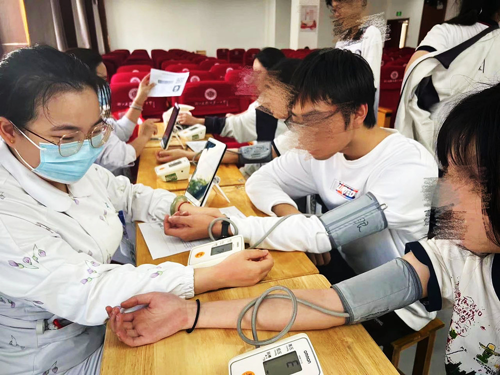 體檢現場井然有序,學生們在老師和醫務工作人員的帶領下,采取分批次錯峰的方式有序排隊,依次進入專區體檢。醫務人員們始終以飽滿的工作熱情、專業認真的工作態度進行體檢,操作規范,客觀、公正地做好每一項檢查。