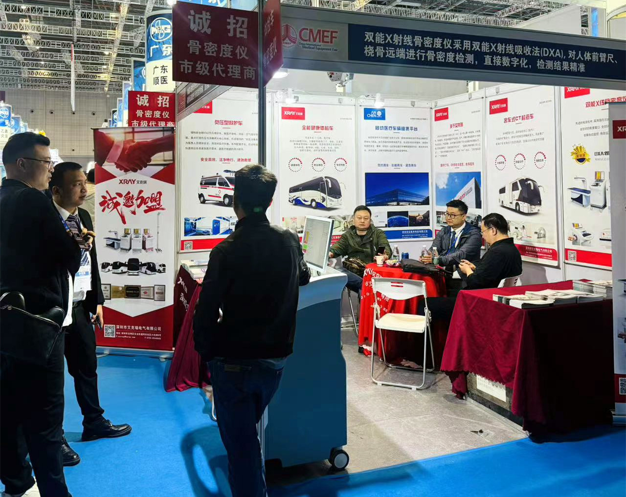 開幕首日,艾克瑞展位的健康體檢車(展位號:8.2-Y26、Y30)和雙能X射線骨密度儀(展位號:7.2-X02)產品,吸引了眾多參觀者駐足、體驗、咨詢。