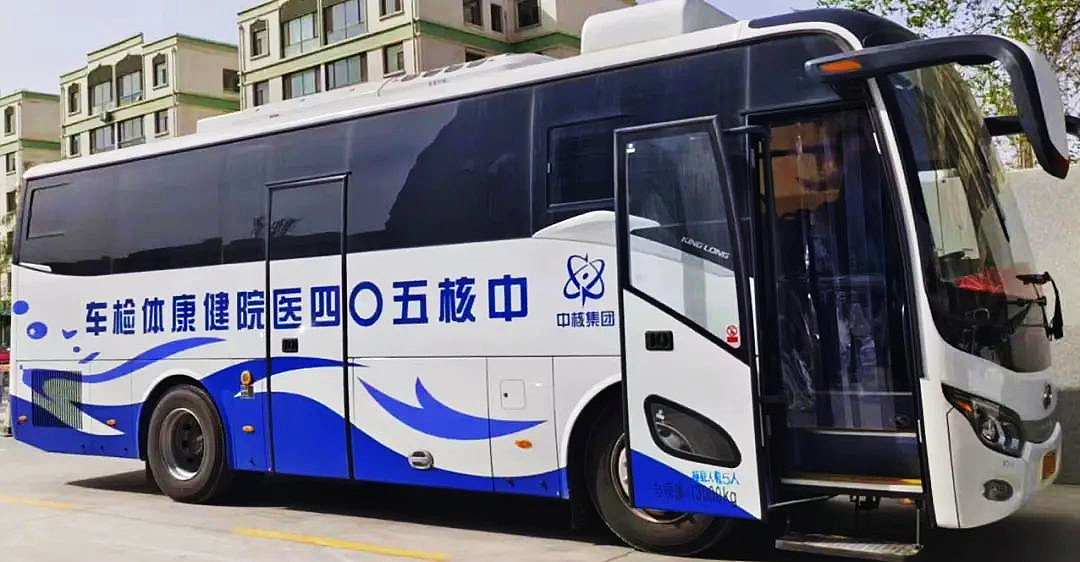 這臺移動一站式體檢車由深圳艾克瑞體檢車生產廠家生產,設施完善、設計先進、功能齊全,配備X光檢查室、彩超檢查床和電測聽室、心電圖檢查床等一系列醫療設備,為中核五〇四醫院外出體檢服務提供了更加強有力的保障。