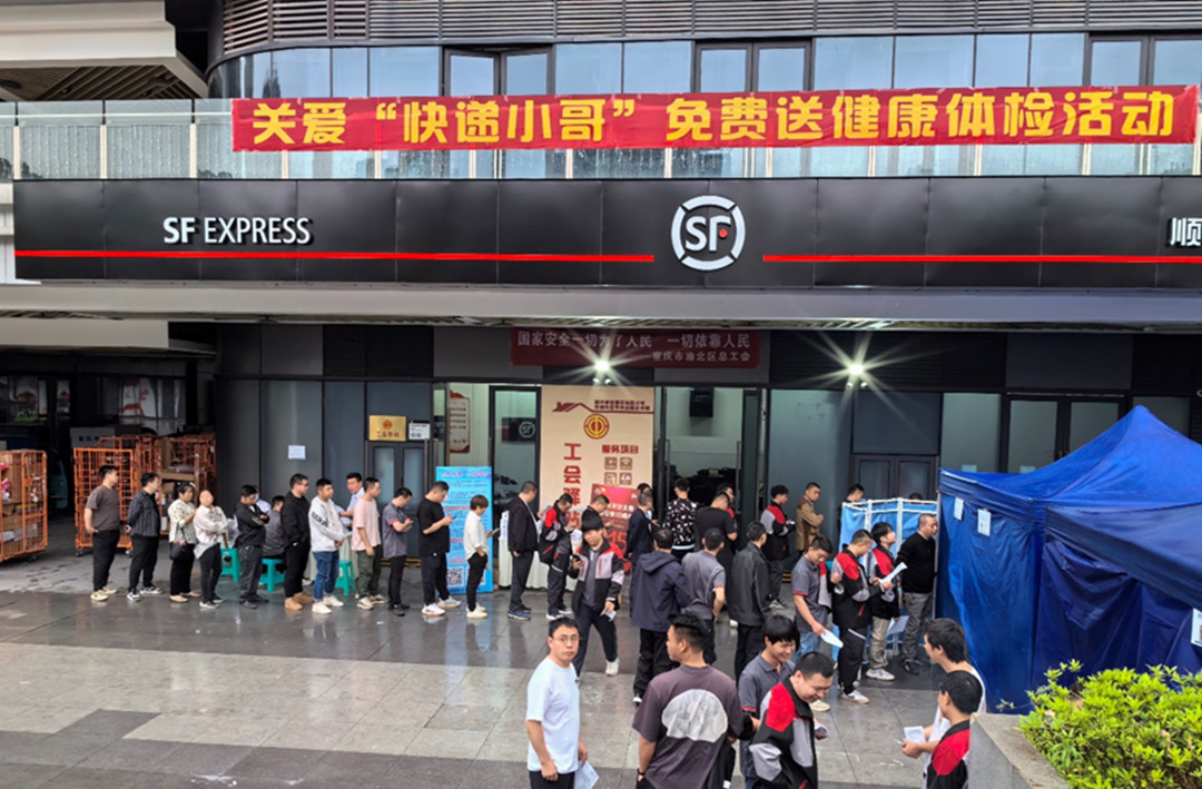 4月19日,渝北區總工會為280名快遞小哥開展了專場健康體檢活動。針對快遞工作在戶外、流動性強的特點,來自總工會楊家坪療養院的移動體檢車開進了投遞點,將健康服務送到勞動者身邊。