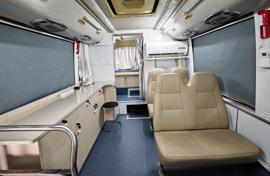 車內的布局(如檢查床、空調、操作臺、消毒燈等)也需要根據客戶需求重新設計,讓車內更加人性化和舒適。寬敞的空間、合理的分區,使得體檢流程更加順暢高效。受檢者在車內不再感到局促和擁擠,能夠在輕松愉悅的環境中完成各項檢查。