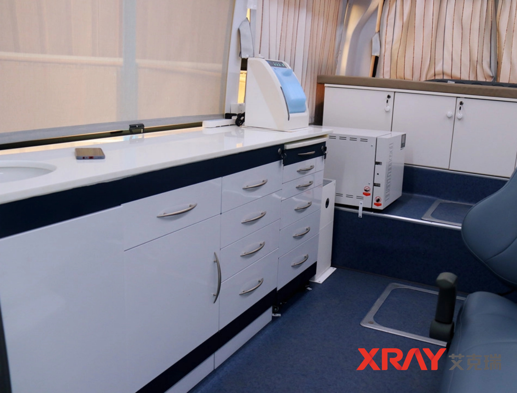 艾克瑞移動牙科車有多款車型可選,車上可按需配置口腔內窺鏡、牙科CT、綜合治療椅、超聲波潔牙機、牙科影像板掃描儀、洗手池、儲水罐、工具儲存箱、紫外線消毒燈等一系列口腔醫療專用設備,并配有完善的凈水系統、污水處理系統等。無論是常規的口腔檢查、牙齒清潔,還是復雜的補牙、根管治療等項目,都能在車內高效、精準地完成。
