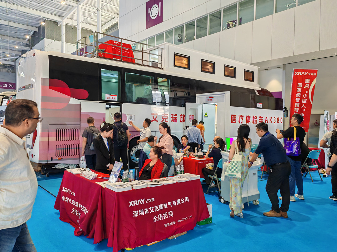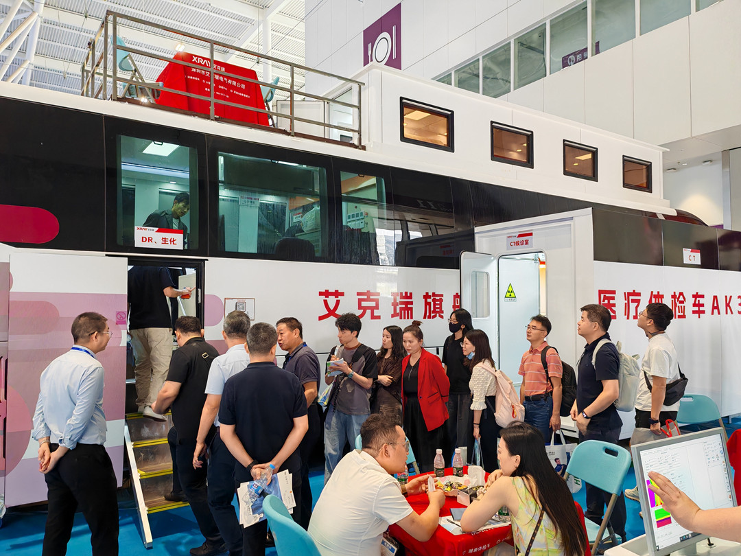 開幕首日,艾克瑞展位(展位號:14號館14T32)的雙層全檢體檢車前就人流如織,擠滿了前來觀展的觀眾,同時吸引了諸多國際友人前來參觀了解合作!艾克瑞團隊工作人員積極與參展觀眾互動,耐心解答他們對產品相關疑惑。通過現場演示和解說,觀眾們對艾克瑞的產品給予了高度的認可和支持。