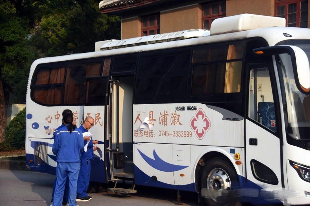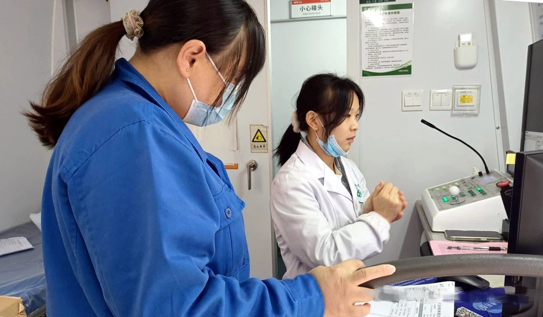 為確保體檢工作順利進行,溆浦縣人民醫院職業健康體檢中心專門制定了體檢方案,明確了體檢流程,檢查項目主要有內科(職業病)、外科(職業病)、耳鼻咽喉科(職業病)、眼科及眼底、神經系統、職業詢問史、血常規、尿常規、血清ALT(肝功能)、血糖、心電圖、DR胸片(職業病)、肺功能、電測聽等。體檢現場溆浦縣人民醫院醫務人員在體檢車上精心服務,員工分批次、按流程有序進行,接受職業健康專業檢查。