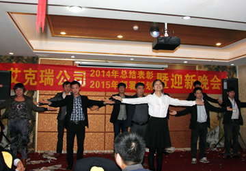 隨后公司舉辦2014年度答謝晚宴,晚宴增進公司全體員工之間的感情交流,同時晚宴中員工熱情高漲,歌舞表演活躍了的晚宴氣氛,中間穿插抽獎環節。艾克瑞一家人會用充滿激情的心,勤奮的手去迎接全新的2015年全新的挑戰。