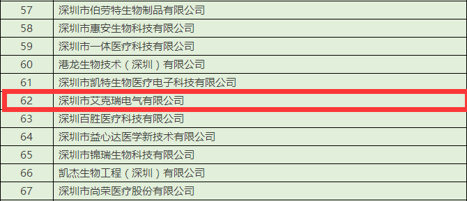 廣東省全國質量信用A類醫療器械生產企業部份名單