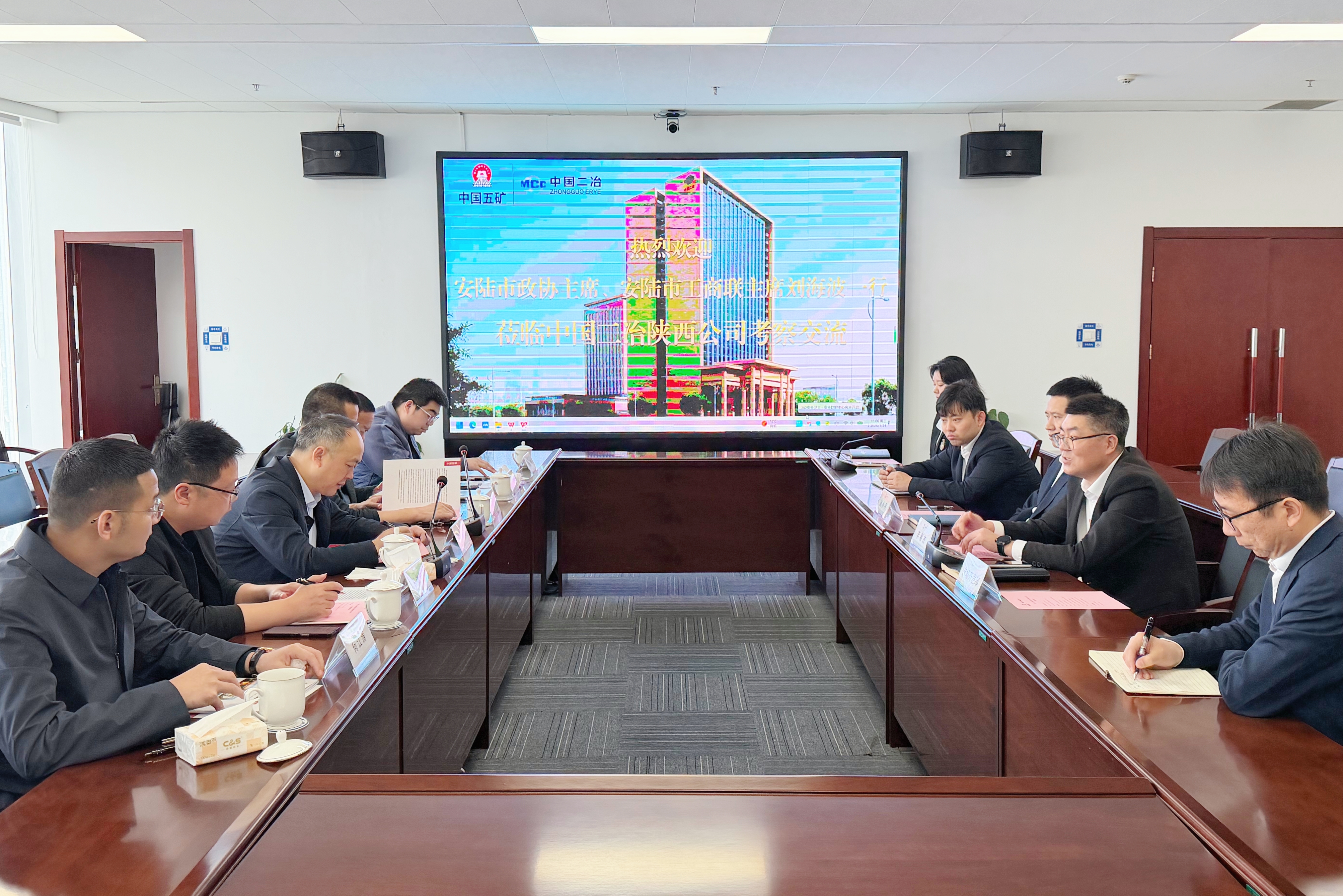 李春杰對劉海波及安陸市政企代表團的到訪表示熱烈歡迎。并簡要介紹了中國二冶及陜西分公司的發(fā)展底蘊、業(yè)務布局及轉(zhuǎn)型規(guī)劃。李春杰指出,陜西分公司多年來深耕屬地區(qū)域,項目履約成效顯著。面對“十五五”規(guī)劃開局之年發(fā)展部署及建筑行業(yè)轉(zhuǎn)型升級的新形勢,陜西分公司深刻把握國家政策導向與行業(yè)發(fā)展脈搏,逐步構建起了全產(chǎn)業(yè)鏈發(fā)展模式。李春杰表示,安陸市發(fā)展規(guī)劃與陜西分公司業(yè)務布局高度契合,我們愿發(fā)揮自身優(yōu)勢,為當?shù)厥姓A設施、城市更新、產(chǎn)業(yè)配套及民生工程等領域提供優(yōu)質(zhì)服務,全力推動政企深度協(xié)同、互利共贏。