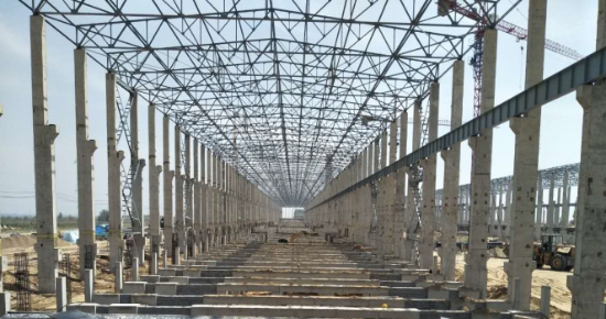 提到內蒙古達拉特旗,人們會自然聯想到風景優美的庫布齊沙漠和響沙灣風景區,這里大漠浩瀚、瑰麗壯觀,是全國著名的沙漠旅游風景區。但對于踏上這片沙漠的建設者來說,飛沙揚礫、綿延千里的沙漠只是他們征戰的沙場。2017年大年初六,大多數人們還沉浸在春節的團圓喜慶之中,而項目部的管理人員卻已經在一片春寒料峭中,開啟了嶄新的征程。從辦公區到制作區,從選址到場地建設,項目部在極短的時間內完成了前期準備工作。沙塵頻發且風力較大,晝夜溫差極大,干燥少雨,冬寒夏熱,達拉特旗典型的沙漠氣候讓建設者們切切實實地領略了一把“大漠風光”。由于甲方原因,該項目整體工期較其他單位相比,整體滯后了約五十天。項目部于六月初開始基礎施工,就面臨著工期緊張、場地狹小、交叉作業、自然條件惡劣等諸多困難,這著實考驗著項目部的戰斗力和鋼結構公司的管理水平。轉變思路,調整定位,中國二冶將該項目列為重點監管工程,從人員配置、對接溝通、技術方案、物料準備,方方面面都做足了功課,堅決不打無準備之仗。集團重視、部門支持、項目部發力,多方協調齊抓共管之下,項目部科學管理,合理安排工期,將人員進行分組,倒排工期,晝夜施工。頂著寒風,踏著積雪,迎著黃沙,從場地平整,到大臨建設,從2017年6月5號基礎施工開始,到首榀予制柱吊裝成功,從500KA電解槽首臺樣槽落成,到8月5日屋頂主框架形成,建設者們斗嚴寒,戰酷暑,搶工期,抓進度,在短短的三個月時間內,完成了鋼結構制作安裝近一萬噸的工作量,1#、2#煙氣凈化系統全部完成,電解槽基礎及短柱施工累計完成92臺。11月2日,一節長41米,重26噸的氧化鋁輸送通廊,由200噸履帶吊順利安裝到位,標志著氧化鋁車間關鍵的通廊節點順利完成。12月6日,2#電解車間92臺電解槽上部結構制作任務全部完成。質量好,進度快,這樣的“鋼結構速度”贏得了多方的高度贊譽,并獲得了甲方的獎勵,為后續市場的開拓奠定了基礎,為中國二冶贏得了良好的口碑,也標志著鋼結構公司亮劍大型綜合類施工項目首戰告捷。