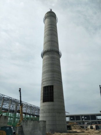 (1#煙氣凈化系統煙囪70m筒壁施工完成,35m、65m鋼平臺完成)