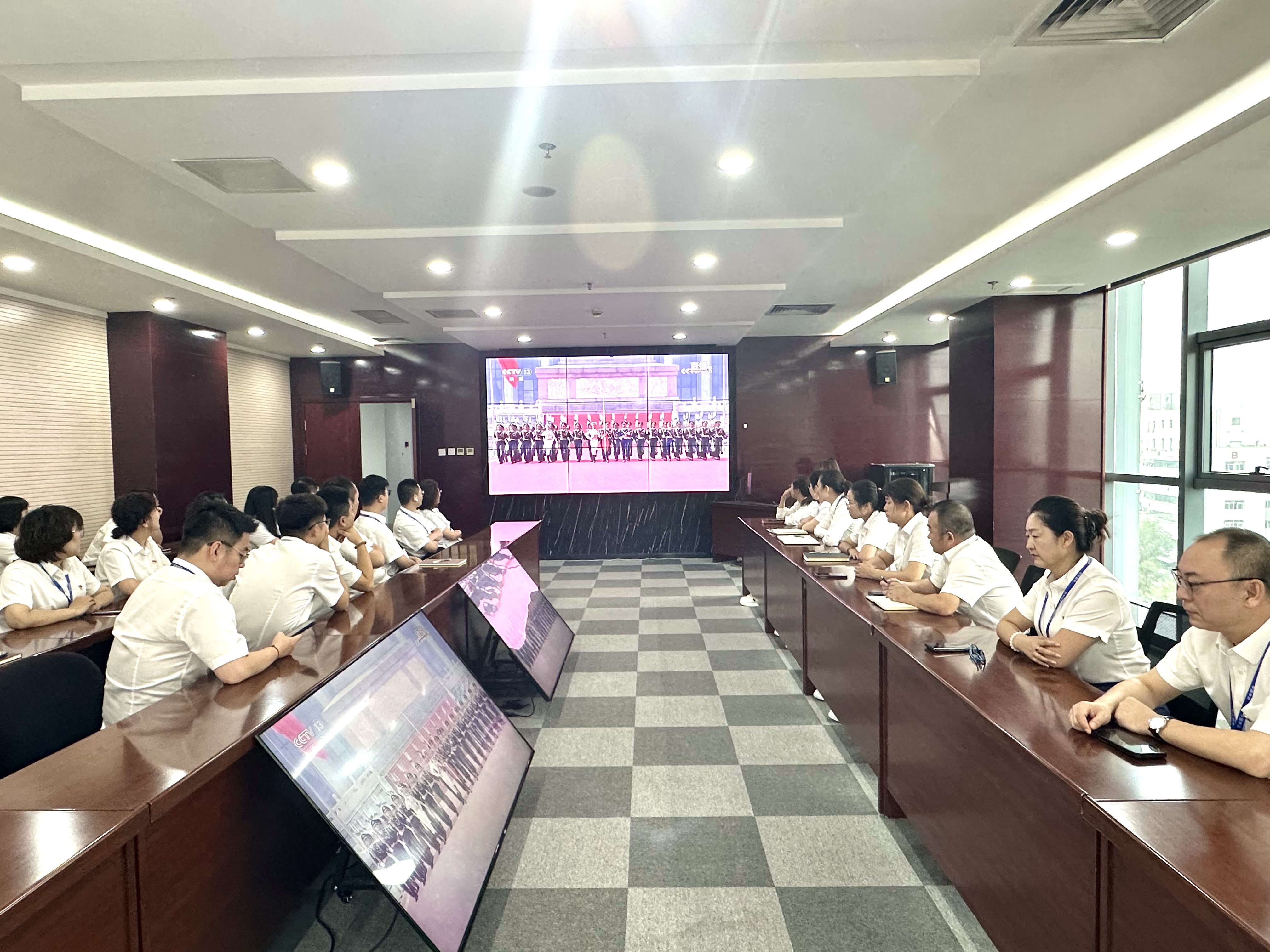 觀看過程中,全體職工始終保持肅穆姿態(tài),目光緊緊聚焦屏幕,全神貫注沉浸在儀式的莊重氛圍里。大家認真聆聽習(xí)近平總書記發(fā)表的重要講話,目光緊緊追隨閱兵式的每一個環(huán)節(jié)——受閱官兵邁著鏗鏘有力的步伐,以昂揚向上的風(fēng)貌展現(xiàn)國威軍威;先進精良的國防裝備依次亮相,生動呈現(xiàn)國家現(xiàn)代化建設(shè)的輝煌成就與綜合國力的飛速提升。威武的受閱方陣、尖端的裝備展示、高昂的民族士氣,不僅彰顯出我國日益強大的國防實力與堅韌不屈的民族精神風(fēng)貌,更向世界傳遞出中國維護和平穩(wěn)定、推動共同發(fā)展的堅定決心。