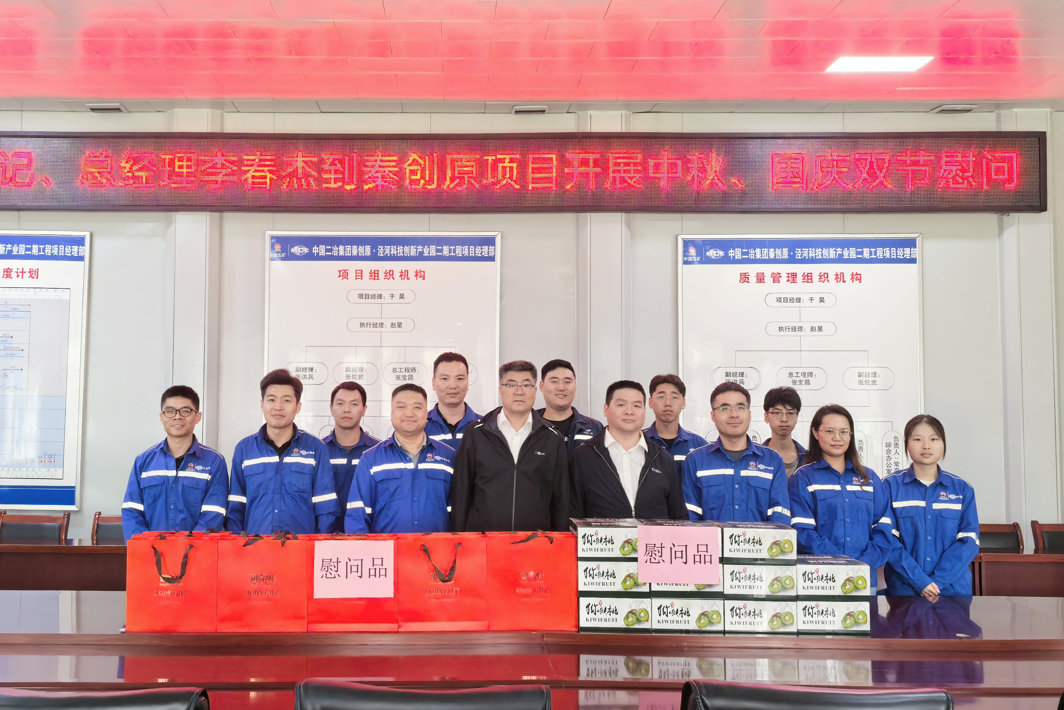秋高氣爽,丹桂飄香。在中秋、國慶“雙節”即將來臨之際,為切實傳遞公司對一線員工的深切關愛,確保節日期間項目建設安全平穩推進。9月30日,中國二冶陜西分公司黨委書記、總經理李春杰深入秦創原·涇河科技創新產業園項目施工一線,看望慰問節日期間仍將堅守崗位的廣大干部職工,并開展安全生產帶班檢查,筑牢節日安全防線。分公司安全總監高勁超陪同。