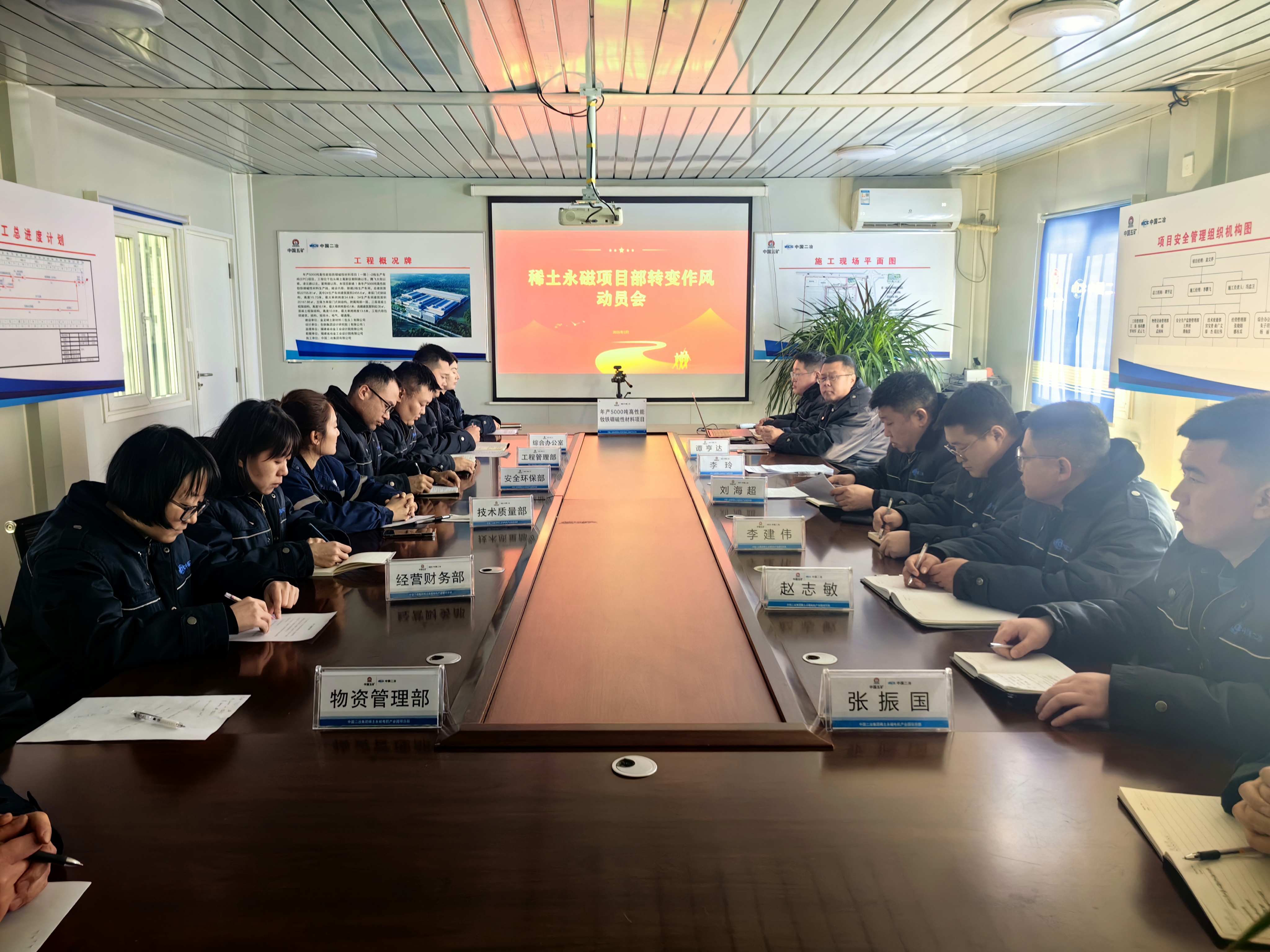 3月17日,城建分公司稀土永磁項目部召開轉(zhuǎn)變作風動員會,強力推出“六個堅持”加強作風建設(shè),細化崗位職責,舉一反三查找不足,提升工作質(zhì)量,樹新風、立正氣,鼓足干勁實現(xiàn)全年目標。