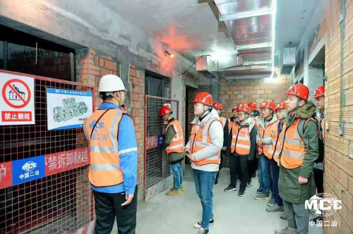 清晨,我們早早的來到公司,乘坐大巴一同從公司出發,一個多小時的車程后,我們抵達了董家埂項目部。透過車窗,第一眼就看到了夾道歡迎我們的董家埂同事們,背后則是一棟棟正在施工的高聳大樓,大家被同事們熱情的包圍中,通過項目大門,在大門門衛室旁的空地處列隊領取并佩戴好安全帽和反光背心,然后在董家埂管理人員的帶領下進入施工場所進行觀摩。