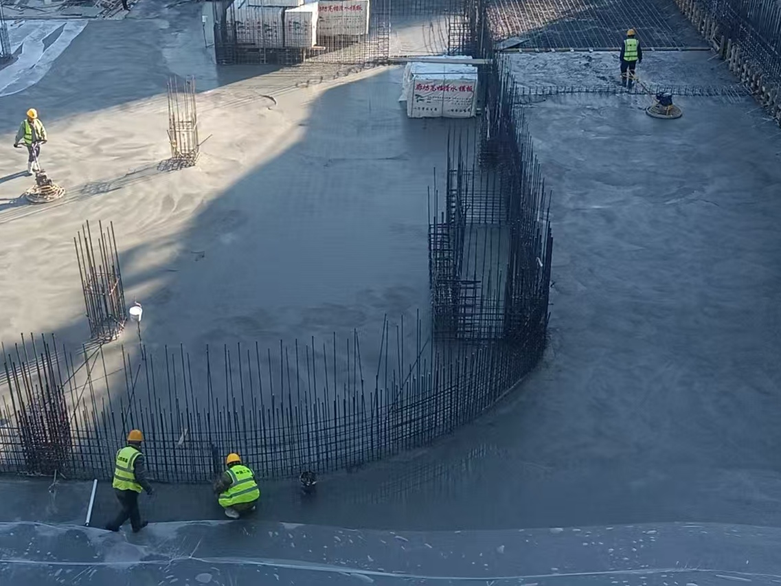 濟(jì)南姚家保障房項(xiàng)目位于山東省濟(jì)南市,屬于城中村改造類項(xiàng)目。項(xiàng)目占地約4萬(wàn)平米,規(guī)劃建設(shè)1號(hào)-7號(hào)樓及地下車庫(kù)共8棟單體建筑,其中2號(hào)樓占地面積7200平方米。此次澆筑的筏板是2號(hào)樓A3區(qū)塊,面積為2050平方米,厚度50厘米且柱墩處厚度達(dá)1.2米。筏板是建筑的基礎(chǔ)承重結(jié)構(gòu),對(duì)保障房整體穩(wěn)定性至關(guān)重要。為確保澆筑工作高效有序推進(jìn),項(xiàng)目部重點(diǎn)落實(shí)三項(xiàng)核心舉措:一是嚴(yán)格遵循 “事前充分交底、事中精準(zhǔn)控制、事后科學(xué)養(yǎng)護(hù)” 的全過(guò)程管理原則,采用分層分塊澆筑工藝,保障混凝土澆筑均勻密實(shí),從技術(shù)層面筑牢工程質(zhì)量根基;二是針對(duì)澆筑期間低溫天氣挑戰(zhàn)與連續(xù)施工需求,提前制定專項(xiàng)應(yīng)對(duì)方案,通過(guò)鋪設(shè)保溫材料、科學(xué)調(diào)整混凝土配合比,規(guī)避低溫對(duì)混凝土強(qiáng)度的不利影響,同時(shí)前置辦理夜間施工許可手續(xù)、優(yōu)化資源調(diào)配方案,組織施工人員實(shí)行多班次輪班作業(yè),確保澆筑質(zhì)量達(dá)標(biāo)且過(guò)程不間斷;三是建立全流程管控機(jī)制,對(duì)混凝土供應(yīng)、運(yùn)輸環(huán)節(jié)實(shí)施動(dòng)態(tài)監(jiān)控,由項(xiàng)目部管理人員與項(xiàng)目監(jiān)理人員共同對(duì)澆筑環(huán)節(jié)開(kāi)展旁站監(jiān)督,全方位把控工程進(jìn)度、質(zhì)量與施工安全。經(jīng)過(guò)全體參建人員 33 小時(shí)的連續(xù)奮戰(zhàn),首塊筏板澆筑工作按計(jì)劃順利完成,為后續(xù)主體結(jié)構(gòu)施工奠定了堅(jiān)實(shí)基礎(chǔ)。