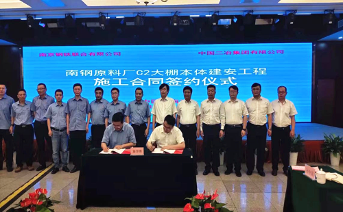 6月23日,中國二冶與南京鋼鐵聯合有限公司舉行南鋼原料廠2號C型封閉料場工程施工簽約儀式。公司黨委書記、董事長徐永鋒,副總經理劉寶世,南京鋼鐵聯合有限公司聯席總裁姚永寬等領導出席簽約儀式。南鋼副總裁朱平,中國二冶冶金分公司黨委書記、總經理楊寧代表雙方簽約。