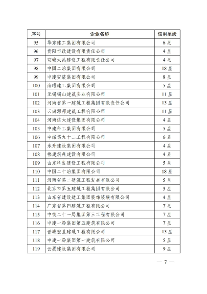 6月28日,工程建設(shè)行業(yè)信用體系建設(shè)平臺(tái)(中施企協(xié)信用字【2021】11號(hào))發(fā)布2021年第二批工程建設(shè)企業(yè)信用星級(jí)認(rèn)定結(jié)果,中國二冶獲得“工程建設(shè)企業(yè)信用星級(jí)18星級(jí)”。