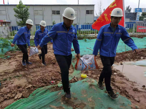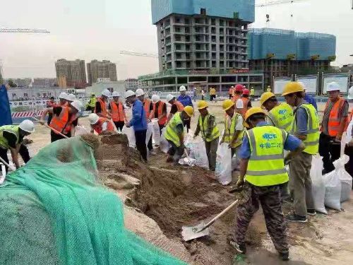 冶金分公司鄭州市鄭東新區如意東路便民服務中心EPC工程項目部積極配合中原公司、業主開展抗洪搶險工作,保證施工現場人員及財產安全。