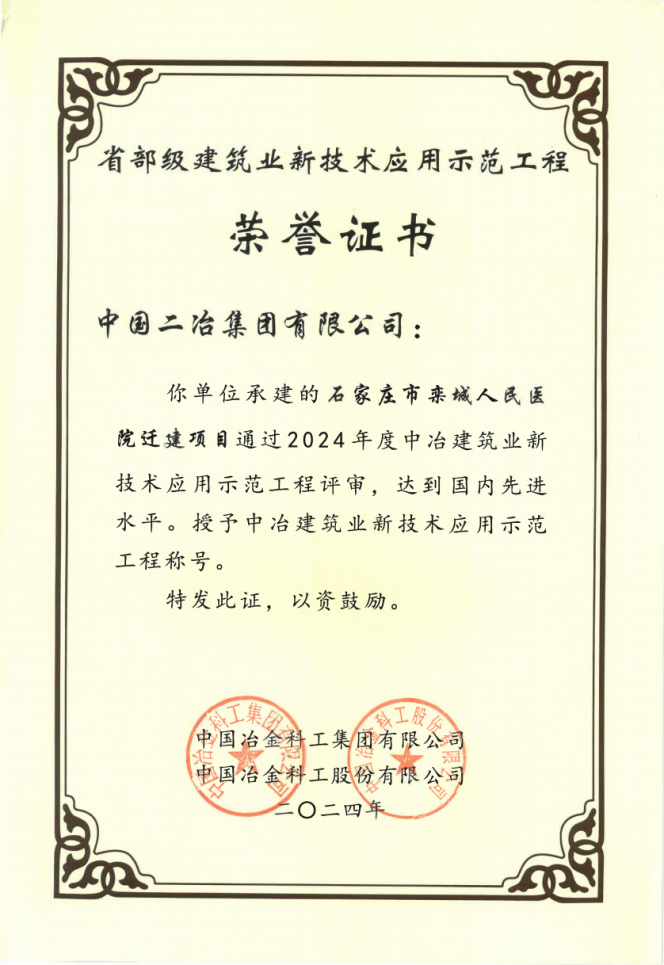 近日,由中國二冶承建的G59呼北高速湖南省新化至新寧段項(xiàng)目、石家莊市欒城區(qū)人民醫(yī)院遷建項(xiàng)目、西安地鐵15號(hào)線一期工程3標(biāo)段一工區(qū)工程,被評(píng)為“中冶建筑業(yè)新技術(shù)應(yīng)用示范工程”,其新技術(shù)應(yīng)用與技術(shù)創(chuàng)新水平被認(rèn)定為國內(nèi)領(lǐng)先水平。