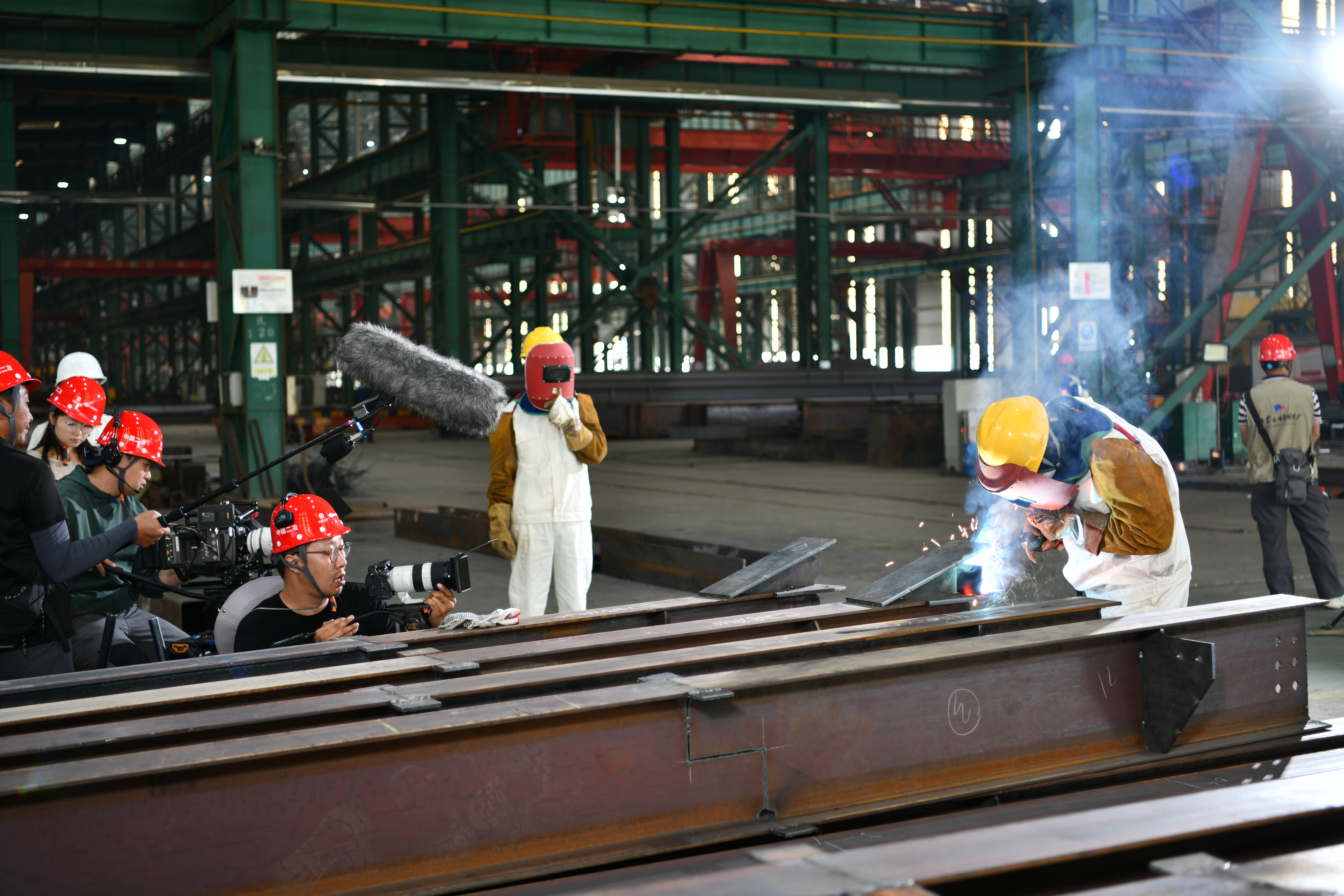 ?拍攝過程中,中國二冶展現出高效的組織協調能力,在鋼結構制造基地內精心規劃專屬拍攝場地,并抽調鋼結構大師工作室的焊接專家團隊,為攝制組提供全方位專業指導,助力《守隙》這部廉政主題微電影高質量呈現。