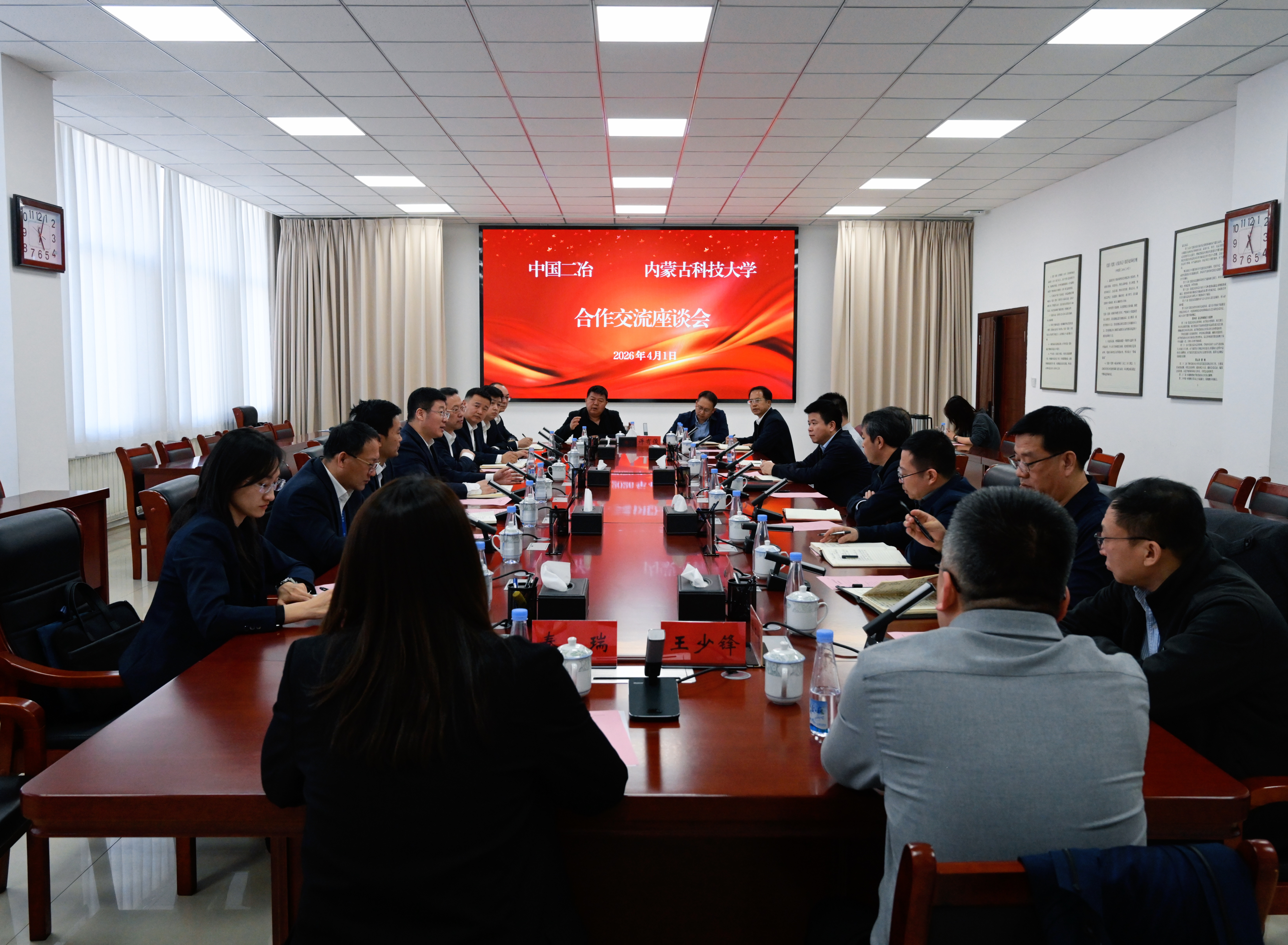 內(nèi)蒙古科技大學(xué)校長助理劉承,相關(guān)學(xué)院院長、處室處長劉小勇,曹釗,張永強(qiáng),高峻峰,劉文,王少鋒,許有俊,王文明,秦瑞;中國二冶總部部門及二級公司負(fù)責(zé)人高盟、趙力欣、王志義、李曉明、韓慧超、尹力、李國強(qiáng)等參加會(huì)談。
