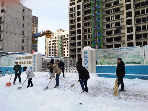 接到指令后,大家紛紛拿起清掃工具,有的揮舞掃帚、有的掄起鐵鍬,爭先恐后對分管片區開始清掃,寂靜的現場頓時熱鬧起來。經過大家兩個多小時的清理,項目部院內的積雪全部清掃干凈,施工現場周邊道路上也掃出一條干凈的小道,為周邊群眾出行提供了便利。這次積雪清掃,不僅體現了中國二冶良好的企業形象,也得到了周圍群眾的一致好評。