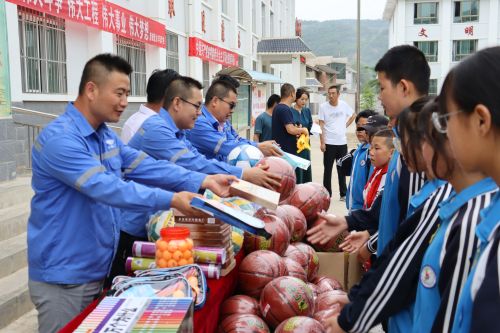 景禮項(xiàng)目黨支部為禮縣崖城鎮(zhèn)九年制學(xué)校送去了書籍、籃球等體育用品和學(xué)習(xí)用品,并鼓勵(lì)孩子要汲取力量,樹立信心,做一個(gè)臉上有笑容、心中有陽(yáng)光的孩子,用一顆感恩的心、以優(yōu)異成績(jī)回報(bào)父母,回報(bào)社會(huì)。