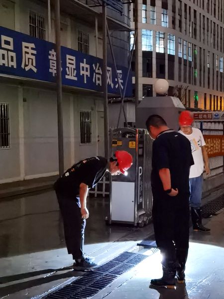 風雨將至,但安全隱患未除,身著“中冶藍”的建設者們總是不放心。現(xiàn)場人員全部得到妥善安置后,項目部防臺防汛領導小組逆風而行冒雨深入施工現(xiàn)場,對臺風天氣下可能存在的安全隱患進行逐一排查,當場發(fā)現(xiàn)問題,當場加固整改。為了防止出現(xiàn)人員反流,項目部堅持夜間巡查制度,對施工現(xiàn)場及作業(yè)生活區(qū)進行值守,做好現(xiàn)場基坑降排水措施,防治基礎泡水及雨水倒灌,將災害損失降到最低。