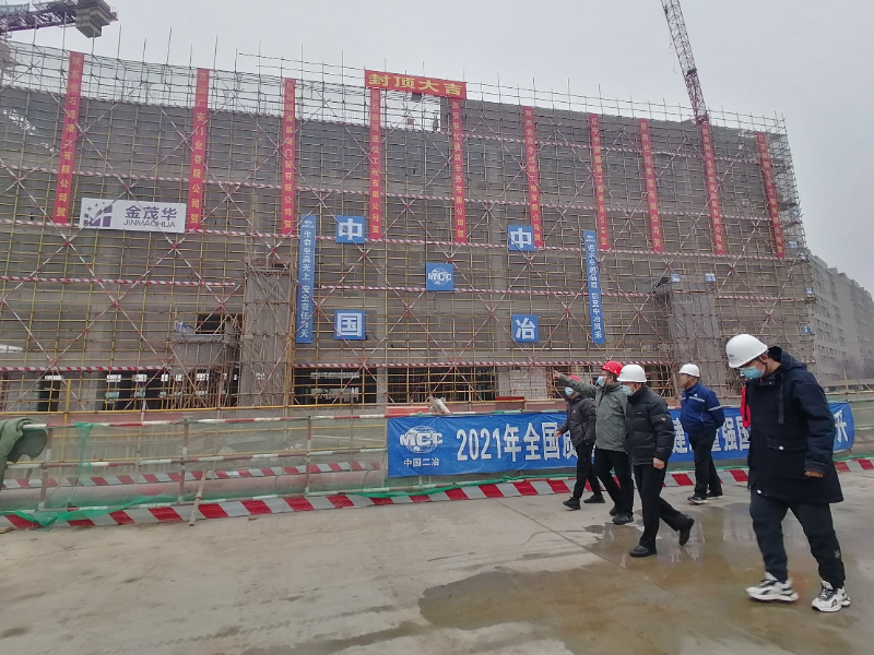 自2021年6月16日開工以來,在工期緊、任務重以及各種不利因素影響工期的前提下,項目部以保證工期履約為目標,將標準化管理理念貫徹每個環節,克服西安市二級霧霾影響、雨天天氣、疫情、農忙時節施工現場勞動力緊缺等諸多不利因素,精心組織安排,緊緊環扣節點,倒排工期。同時項目部嚴控質量,狠抓安全,組織各種活動,如“安全月”、“質量月”等,掀起施工大干熱潮,大干120天,順利完成主體結構施工任務,實現封頂目標。