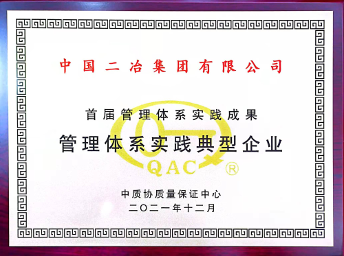 此項榮譽獲得是中國二冶從管理體系初創到成熟、從成熟到優秀、再到最終實現卓越的持續改進過程的見證;也是公司滿足市場操作需求,更新迭代公司管理制度體系,提高制度體系運行效率,保持制度體系旺盛的生命力,以適應公司高質量發展新要求的實踐成果的有力體現。